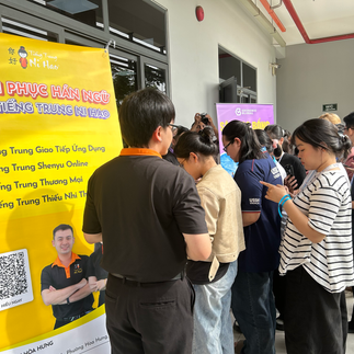 Tại gian hàng của Tiếng Trung Ni Hao, không khí trở nên thật sôi nổi và đầy năng lượng với sự tham gia của đông đảo sinh viên. Các bạn đã thể hiện sự năng động, tự tin và tinh thần ham học hỏi tuyệt vời qua từng hoạt động check - in, giao lưu hỏi - đáp và các trò chơi thử thách.